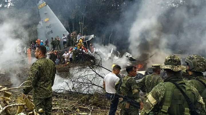 कोलम्बियामा वायुसेनाकाे विमान दुर्घटना हुँदा ६६ जनाकाे मृत्युु